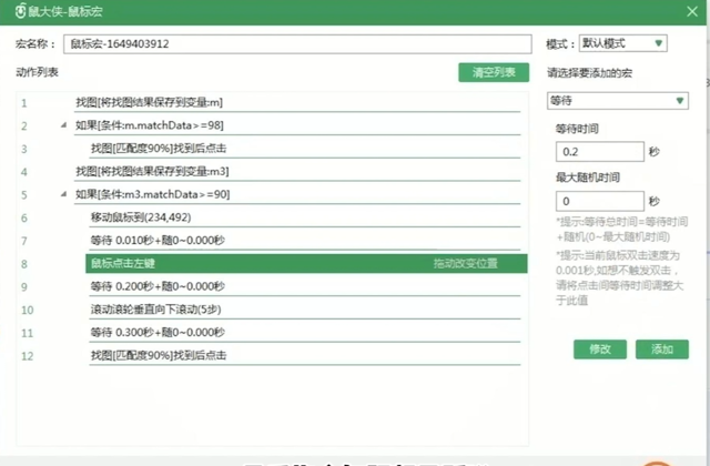 创建鼠标宏,选择找图添加购买时间选择变量,添加如果,如果里面选择刚才保存的变量,大于等于,匹配值我这边现在95,这个匹配值是根据找图测试出来的匹配值设置,在如果下面添加子节点找图选择桌面上的截图立即购买,然后在添加一个找图,选择确认订单修改成变量,添加如果和上面相同这里就不重复了,添加一个鼠标宏移动,等待,点击,网页,鼠标移动位置随意,这里添加鼠标移动点击 是因为有的浏览器需要点一下鼠标滚轮才能上下滚动,所以我们先设置一个移动点击,设置滚轮向下5次,小伙伴可以根据自己显示器来调整次数,添加等待,设置找图提交订单点击一个定时抢购辅助就完成了,我们看一下效果。